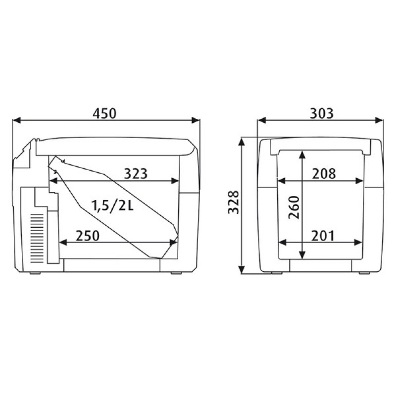 Kwaliteitskenmerken speciale TC-elektronica: elektronische thermostaat met 7 standen en LED controlelampjes, memoryfunctie, in- / uitschakeling en omschakeling koel- / verwamingsmodus via tiptoets bedieningspaneel, intelligente energiebespaarmodus. Geïntegreerde voeding met voorrangschakeling, uitstekend koelvermogen, magneetschakelaar deactiveert binnenventilator bij openen deksel, afneembaar deksel met magneetsluiting, stabiele, inklapbare beugelgreep