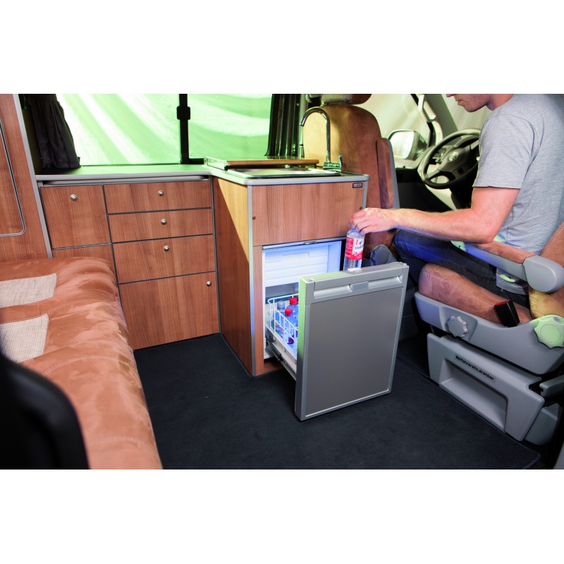 Systeem volledig hermetische Danfoss BD35F compressor met geïntegreerde besturingselektronica, onderspanningsuitschakeling, elektronische beveiliging / automatische ompolingsbeveiliging, dynamisch geventileerde condensor, mechanische traploos regelbare thermostaat